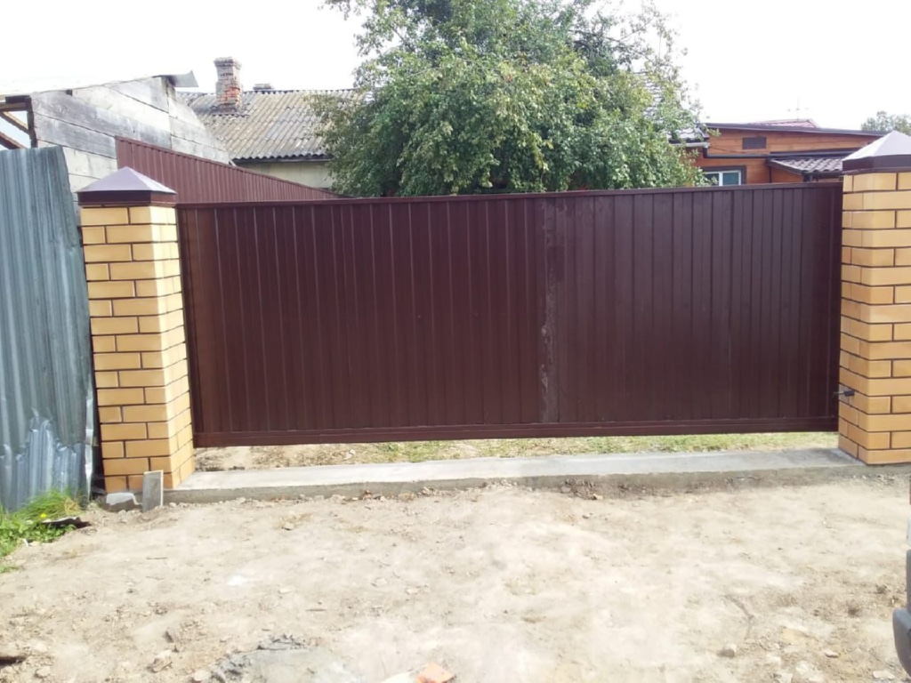 Заборы и ограждения из профнастила с кирпичными столбами 40 метров в Можайске